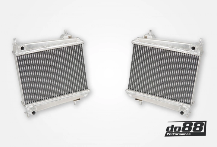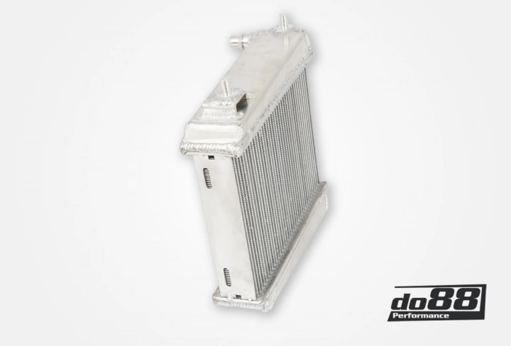 Fortunately, the design space available for auxiliary radiators allows for both increased frontal surface area and core thickness on both sides of the car. The OE radiator is identical for both sides, and our do88 Performance radiators are designed to be a replacement for both the left and right sides. We offer them in pairs because upgrading just one radiator is not as effective as upgrading both at the same time. Our high-performance auxiliary radiators provide increased cooling capacity to prevent heat buildup. Key features include: