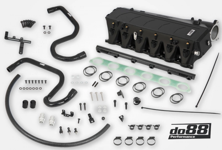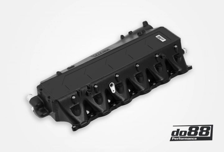 Included with the intake manifold is a special thermal barrier spacer, designed to isolate the aluminum intake manifold from conductive heat transfer from the cylinder head. This barrier effectively reduces intake air temperatures (IAT), improves intercooler efficiency, and helps minimize heat buildup. Unlike the OE plastic intake manifold, the DO88 manifold is constructed of aluminum, capable of withstanding higher boost pressures. The thermal barrier spacer reduces conductive heat transfer, otherwise typical of aluminum components. The spacer features a robust seal, achieved using custom-made, high-spec FKM silicone O-rings. These O-rings are installed in precisely machined grooves for a secure fit. This approach provides a significantly better seal than competing methods, which often rely on less reliable sealing agents.