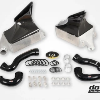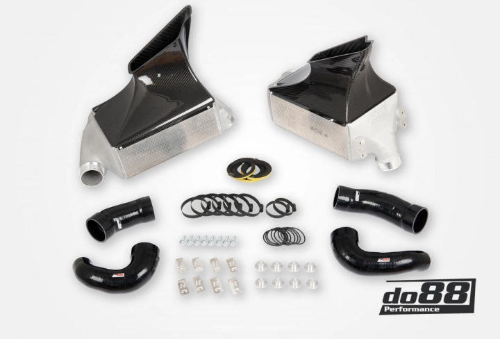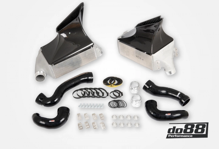The intercooler kit comes with hoses adapted for OEM or DO88 (63.5 mm) Y-pipe. The only difference is the included hoses. Choose your version from the drop-down list above.