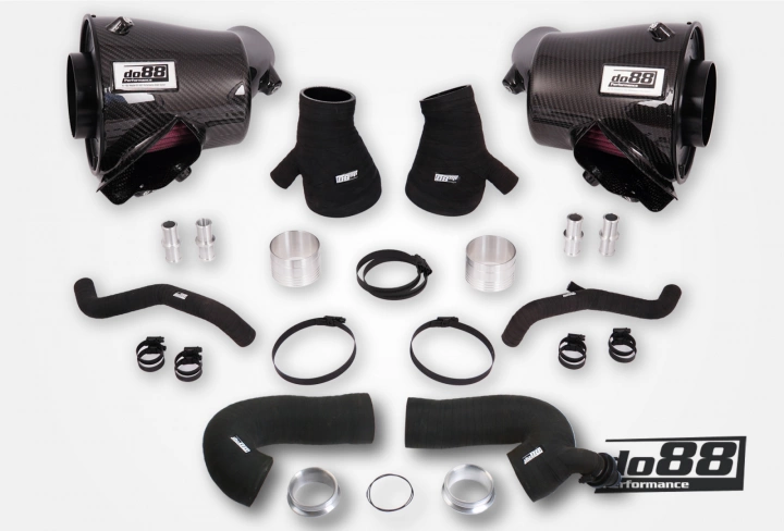 The do88 air intake kit is made from the highest quality vacuum-infused carbon fiber. To increase airflow, the kit truly utilizes all the available space within the car’s structure. The carbon housings are crafted to accommodate a large cone filter from the renowned BMC, using the finest filter media. The do88 intake kit replaces the entire OE air filter box and is a true performance upgrade!