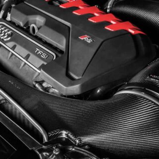 The Eventuri stage 3 intake system for the Audi RS3 8.5V and TTRS 8S is an evolution of the standard Eventuri intake, designed for the most aggressive setups, rated up to 1000hp! This Stage 3 intake features an oversized airbox with carbon venturi housing and a 210mm high-flow dry air filter, a carbon fiber air diffuser, a 4″/103mm carbon fiber intake pipe with heat shield, and all the necessary hardware for direct installation. This unique intake system has shown a massive 30hp gain on the Stage 3 RS3 8.5V equipped with the TTE700 turbo!