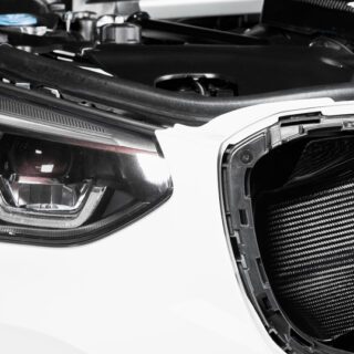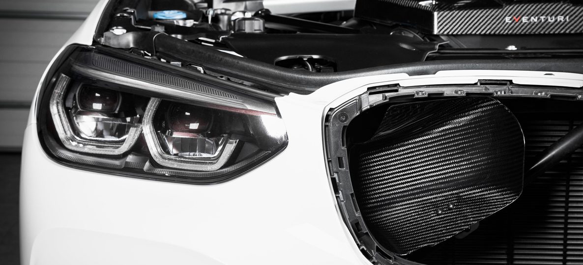 This Eventuri intake system for the S58 engine in the BMW X3M F97 and X4M F98 features a carbon fiber airbox cover, four high-flow air filters, carbon fiber intake scoops, and all the necessary hardware for easy, direct installation. This unique intake system, finished in high-gloss carbon fiber, has demonstrated a massive dyno-proven gain of 11 HP on the stock engine!
