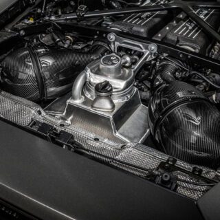 The Lamborghini Huracan Eventuri intake system: form and function in sublime harmony. Our goal was to create a flagship intake and set a benchmark for this platform: using organic curves and pre-impregnated carbon fiber, the results speak for themselves. Gone are the awkward, cubic plastic airboxes, and in their place is a beautifully engineered system that allows for smoother airflow and releases the glorious roar of the V10 engine. Every detail has been considered, from the impeccable carbon fiber to the triple-layer heat shields that ensure the engine receives unrestricted, cool air. More power, improved throttle response, and an intoxicating induction sound… a benchmark.