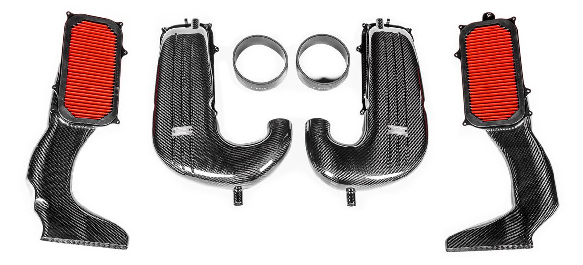 Mercedes GLC C63S AMG comes with two large-volume carbon fiber airboxes, two intake pipes, two air ducts, and all the necessary hardware for direct installation. Not just another cone filter with a heat shield, but a unique design that mimics the Venturi effect, this amazing intake has shown 12 more horsepower than the OEM engine!