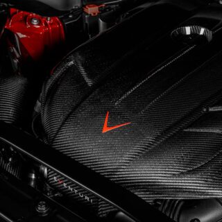The Eventuri intake system for the Toyota Supra A90 B58 utilizes a patent-pending carbon fiber housing that provides an aerodynamically efficient airflow path from the filter to the turbo. Not just another cone filter with a heat shield but a unique design that invokes the Venturi effect, this air intake with large-volume airbox, high-flow air filter, and intake pipe has shown a whopping 20 horsepower gain over the standard engine!