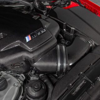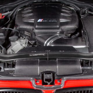 The Eventuri complete intake system for the BMW M3 E9x uses a patent-pending carbon fiber housing that provides an aerodynamically efficient airflow path from the filter to the MAF tube.