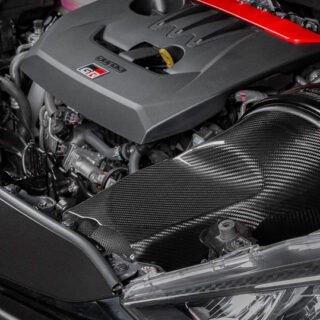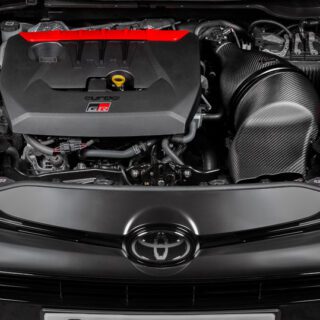 The Eventuri carbon fiber intake kit for the Toyota Yaris GR has been developed to provide the best airflow to the turbocharger while maintaining low intake temperatures. Not just another cone filter with a heat shield, but a unique design reminiscent of the Venturi effect, this Eventuri air intake features a large-volume airbox, a washable and reusable high-flow air filter, a high-flow intake tube, and an air duct with all the necessary hardware for a direct installation that delivers an average of 9 additional horsepower over a stock engine!